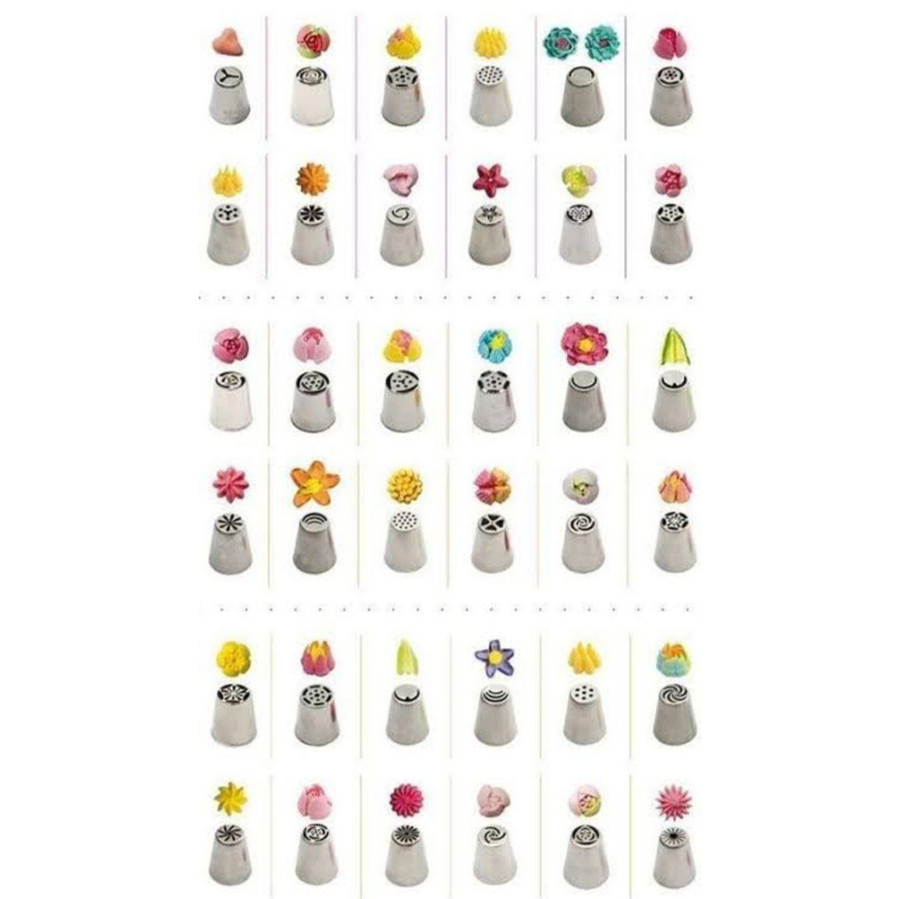 There are many different types of tips that create roses, tulips, daisies, swirls, abstract shapes, and large sets of petals